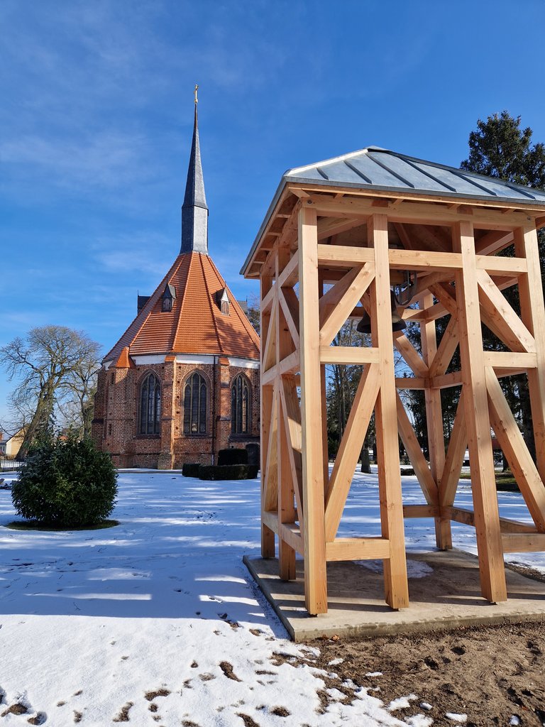 Begründet durch statische Vorgaben änderte sich der Titel des Bauobjektes von Glockenstuhl zu Glockenturm.