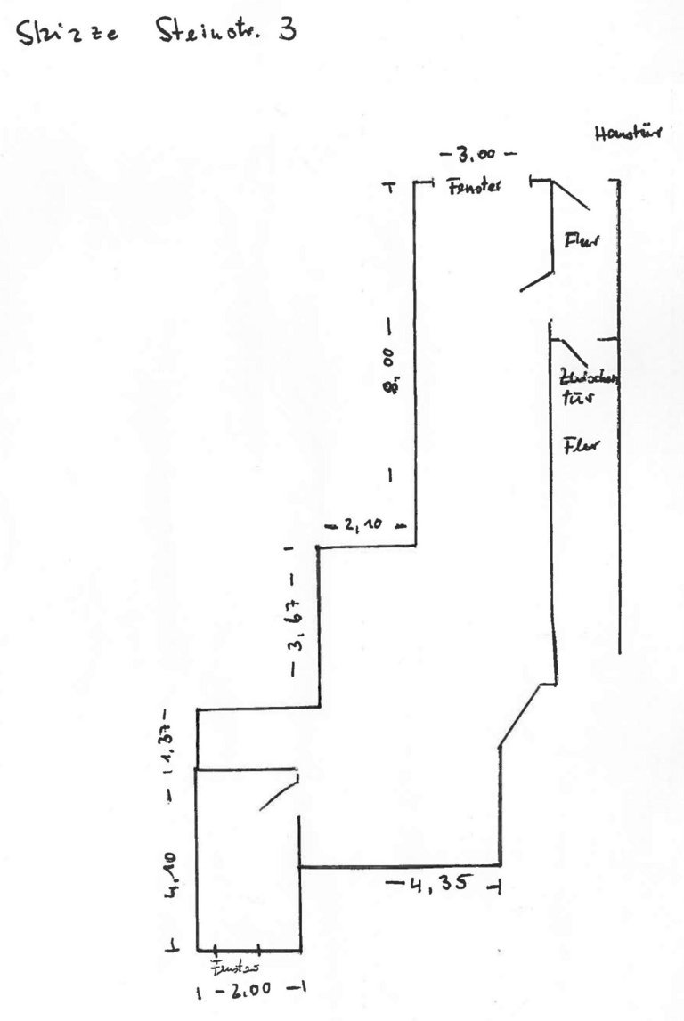 Die Gewerbefläche befindet sich im Erdgeschoss links. Das Haus liegt in der Ladenzeile der Steinstraße im Sanierungsgebiet “Historische Altstadt”. Anschlüsse für Strom, Wasser und Telefon sind vorhanden. Die Verkaufsfläche ist über den Gehweg der Steinstraße barrierefrei erreichbar.