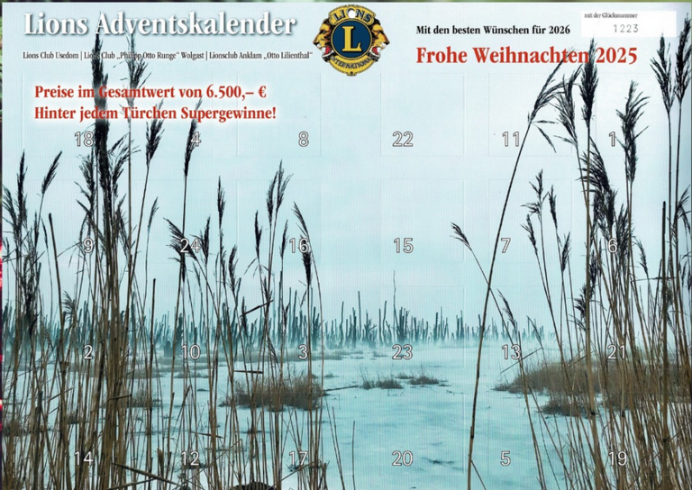 Der Adventskalender wird herausgegeben vom Lions Club Usedom, vom Lions Club "Philipp Otto Runge" Wolgast und vom Lions Club "Otto Lilienthal" Anklam.