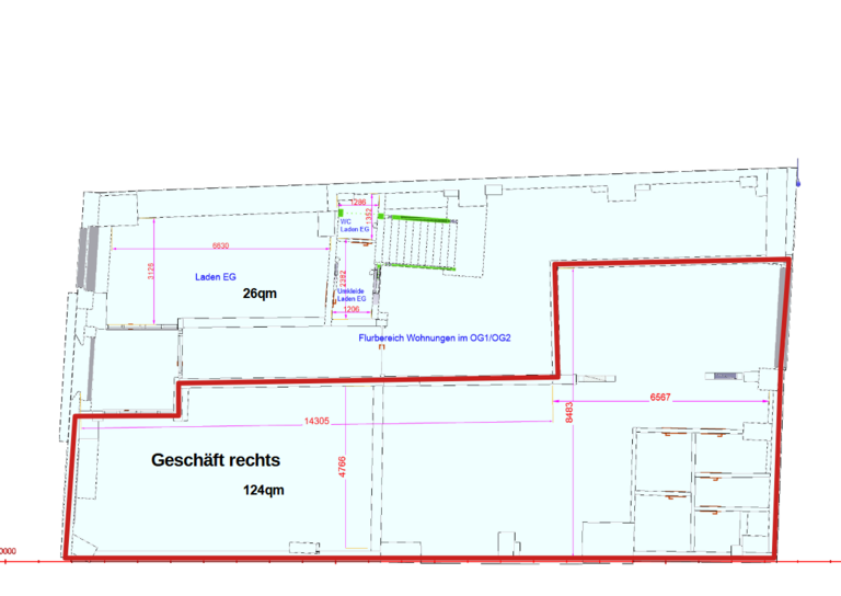 Die Gewerbefläche befindet sich im Erdgeschoss links. Das Haus liegt in der Ladenzeile der Steinstraße im Sanierungsgebiet “Historische Altstadt”. Anschlüsse für Strom, Wasser und Telefon sind vorhanden. Die Verkaufsfläche ist über den Gehweg der Steinstraße barrierefrei erreichbar.